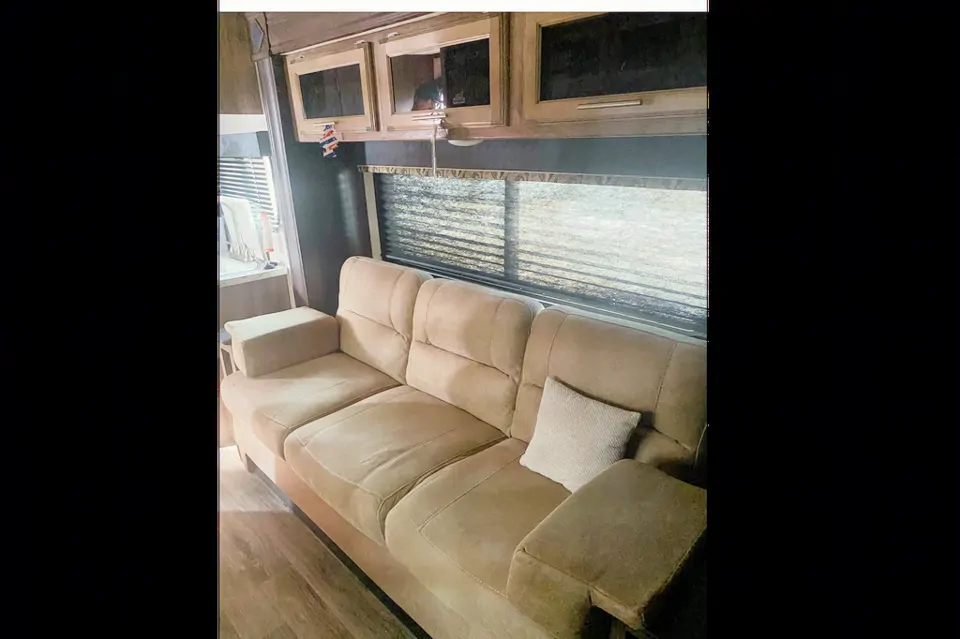 This 2018 Jayco feather is perfect for the ultimate glamping experience for the whole family, Queen size bed that sleeps 2 and table plus couch that both turn into beds. Bluetooth, DVD player and TV, Speakers inside and out, LED lights plus a BBQ that hooks on to the side of the camper.