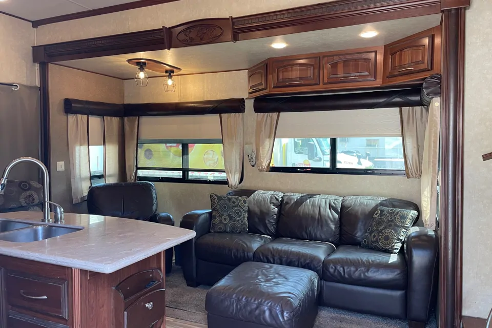 Enjoy all 40 feet of this extremely comfortable house on wheels without the stress of towing something so big down the highway. We will deliver, park, and set up your home away from home so you don’t have to have that dreaded fight with your partner parking it yourself. Enjoy all the wonderful sights that Vancouver Island has to offer. The master bedroom has an extremely comfortable queen size memory foam mattress. The rear space (garage) includes a queen size bunk bed system. Which can be raised up and out of the way should you want to store your toys or perhaps set up the dining table to accommodate seating for six. The rear door can be dropped down and set up as a deck/patio so you can experience the stunning views. The rv is fully self sufficient with a full size fridge, gas range/oven and microwave. Obviously it performs best with 50A power so you can run all your amenities at once but will work just fine on 30A power as well if you are cognizant of turning off the AC when using the microwave or other heavy power consuming appliances. If you choose to camp off grid, no problem. The RV is equipped with two 2000Watt generators that will easily power all your appliances. This RV comfortably sleeps 6 people in the equipped beds and 7 if you include the full size couch. Also included is a full set up for the beach including beach chairs, wagon, umbrella, and toys for the kids.