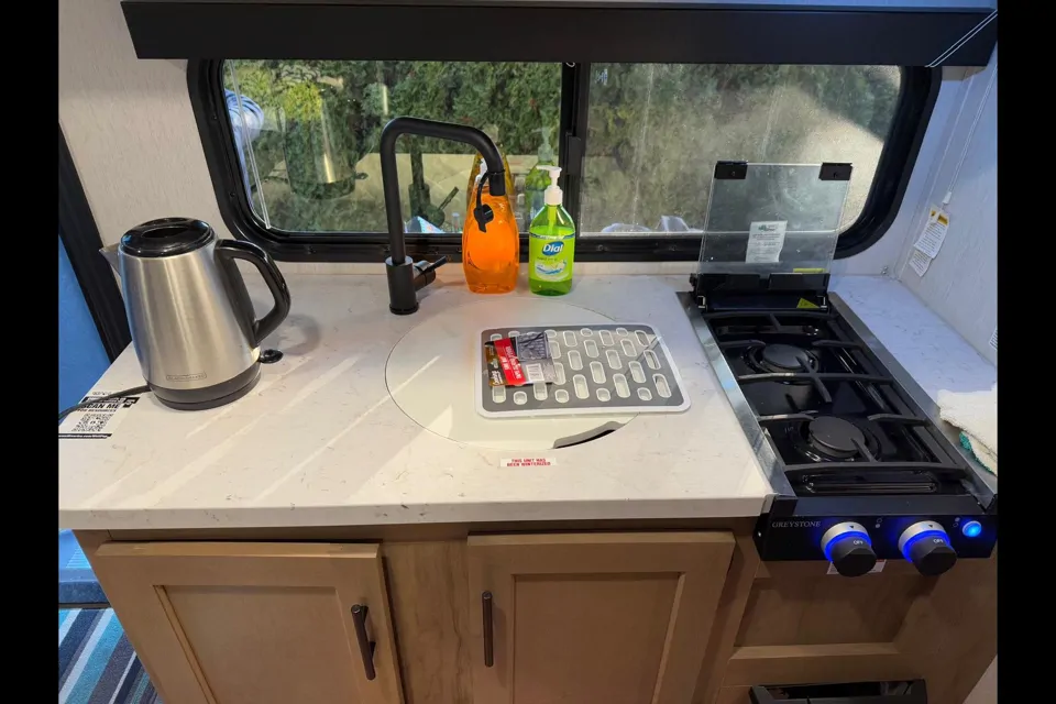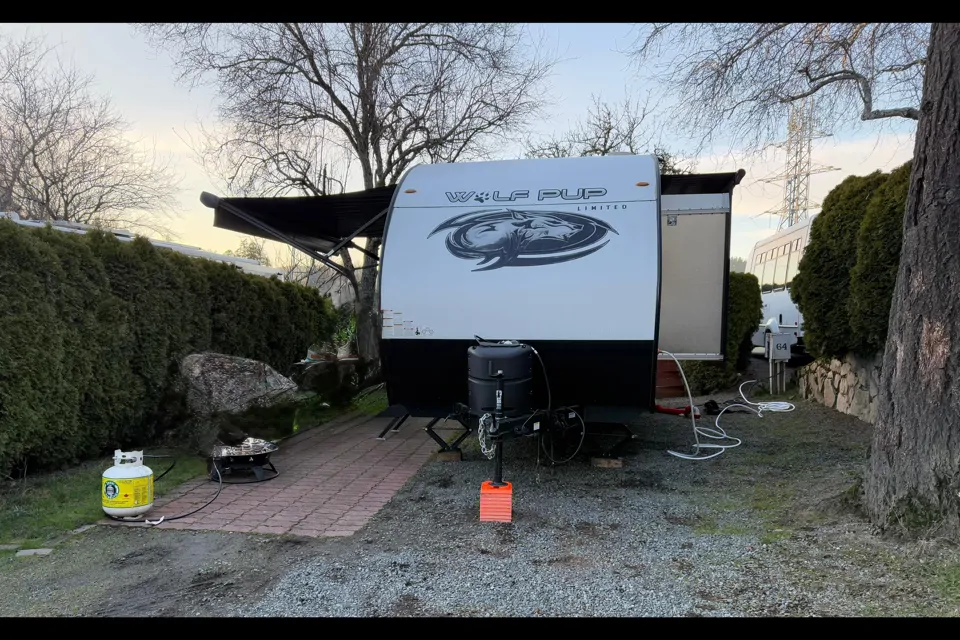 Explore the outdoors in comfort with our **Forest River Wolf Pup** — a lightweight, easy-to-tow travel trailer perfect for couples or small families. This well-maintained RV offers a smart layout with a cozy queen bed, a convertible dinette for extra sleeping space, and a fully equipped kitchen featuring a 2-burner stove, microwave, fridge, and sink. Enjoy the convenience of a private bathroom with a toilet and shower, and relax under the power awning with LED lights after a day of adventure. The Wolf Pup also includes USB charging ports, Bluetooth stereo, TV, and plenty of storage for your gear. Whether you're headed to a provincial park, a music festival, or a weekend by the lake, this camper makes every trip stress-free and enjoyable. It’s pet-friendly, thoroughly cleaned after each rental, and includes optional add-ons like linens, camping chairs, and kitchenware to make your getaway even easier. Ideal for first-time RVers or experienced adventurers looking for a compact, comfortable trailer. Book now and start your next journey with the Wolf Pup — where great adventures begin!