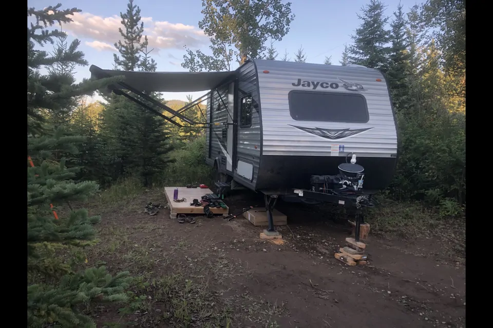 Will sleep 2 adults and 3 kids . Extra comfortable queen bed (memory foam pocket coil ‘bed story brand’ 5 star sleep score) bunks and a dinet sleeper . Even has AC , Microwave and a 30” smart Roku tv if you have shore power or a generator . It has a whisper quite feature on the fan that can also be set to keep the trailer cool automatically . Our guests have commented the queen mattress is extremely comfortable and they have had the best sleep ever while camping .