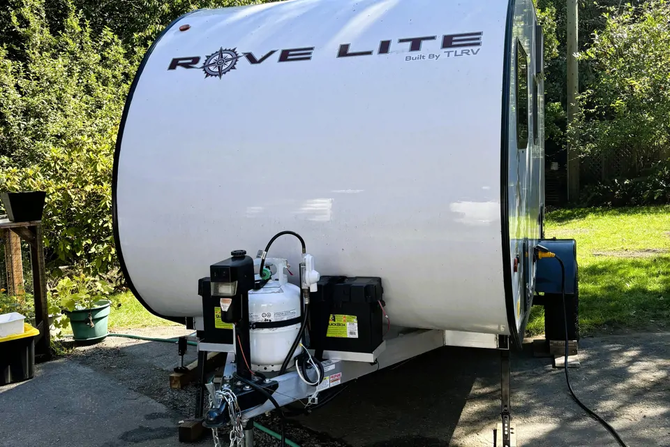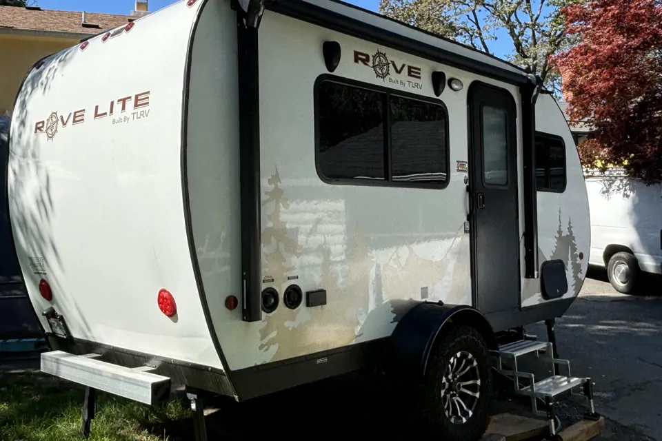Park this rugged lightweight trailer under the stars, make music, breathe deep and slow down. This Rove-Lite provides a comfortable living space with many features that makes "anywhere-camping" both affordable and easy, whether the weather is wet or dry, cold or not. It features selectable blue-tooth indoor/outdoor speakers, indoor vented shower & bathroom, multiple charging ports for computers/phones, exceptional lighting, 12 volt solar or 110 volt plug-in power, on-demand hot water heating, air conditioning, propane furnace, indoor vented cook-top, CO and smoke detectors, fridge with freezer, powered awning and more. Thrive, don't just survive, in your campground. Ideal for a small family (1-2 children) or a couple. A mid-size SUV (or larger) rated for 2,500 lbs or more will be required for towing. Its towing features include electric sway control, trailer brakes, hitch lighting and power hitch lift (with manual backup).
