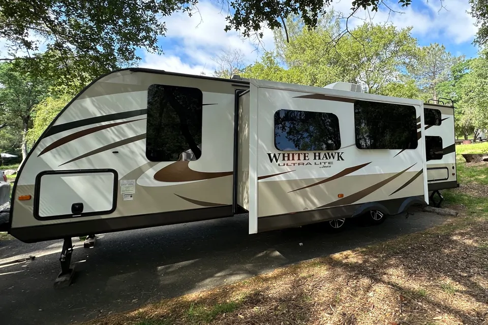 Whether your off to a festival or the forest, enjoy camping good times and comfort in our Jayco Whitehawk Bunkhouse Summit Edition - 28' of camping space for 10 people, with a slide out, and it is 1/2 ton towable!