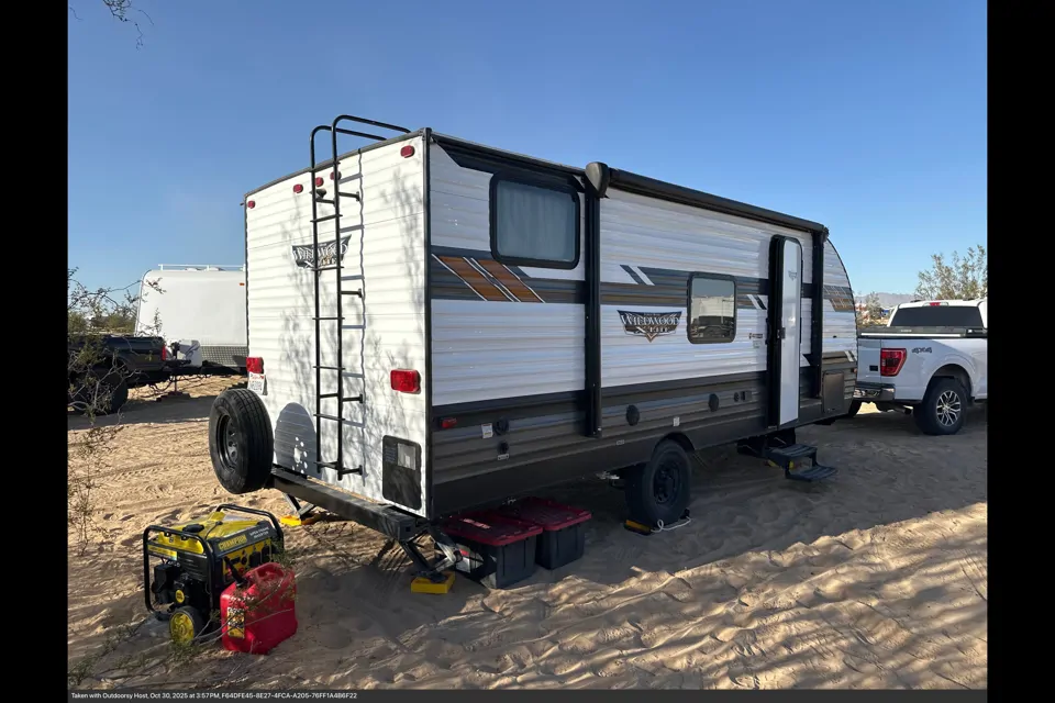 The 2021 FOREST RIVER WILDWOOD X-LITE T178DBFS is a compact and versatile travel trailer, ideal for adventurous families. Key features include a comfortable front queen bed, a rear set of double-size bunks, and a rear corner bath for convenience. The central living area is equipped with a booth dinette, perfect for meals and additional sleeping space. Its kitchen offers essential amenities, including a three-burner range and refrigerator. The trailer also includes a 12' awning for outdoor relaxation. This model combines functionality and comfort, making it an excellent choice for travel enthusiasts.