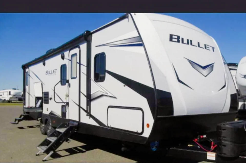 Sleeps 8, private queen bed upfront, sofa bed, 2 double bunks for the kids, dinette bed. Outdoor kitchen.
