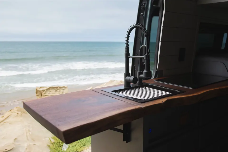 - 2-burner induction cooktop + deep sink with filtered drinking water