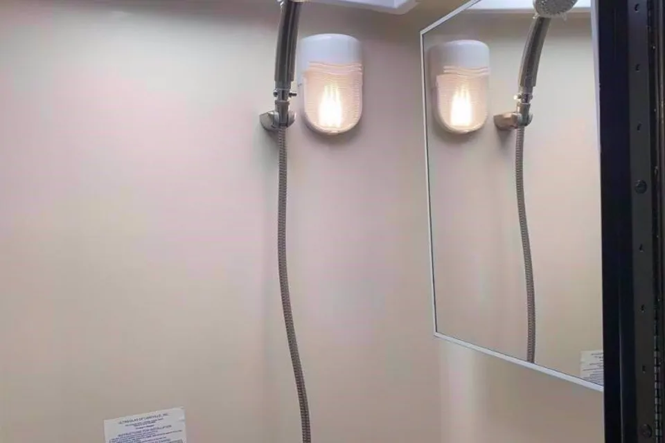 Kitchen feathers a dual gas burner, microwave, refrigerator with freezer, sink. The very efficient heating system keeps you warm and cozy on cold nights. To stay cool during hot days, there is a full-size air conditioning system. Please note, the AC will need electrical hookups or else use the generator, which is included. This rig has everything you need to make your adventures comfortable.