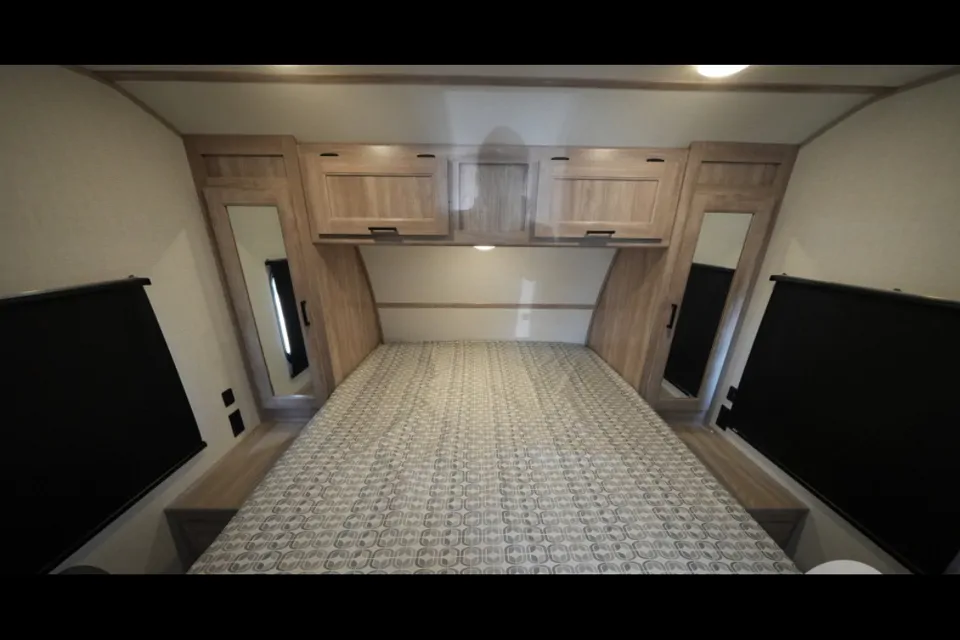 This toy hauler trailer sleeps 5–8 people and has all the room you need for your next adventure. With a 56-gallon fresh water tank, 78-gallon grey tank, and 39-gallon black tank, it’s built for extended stays without constant hookups.