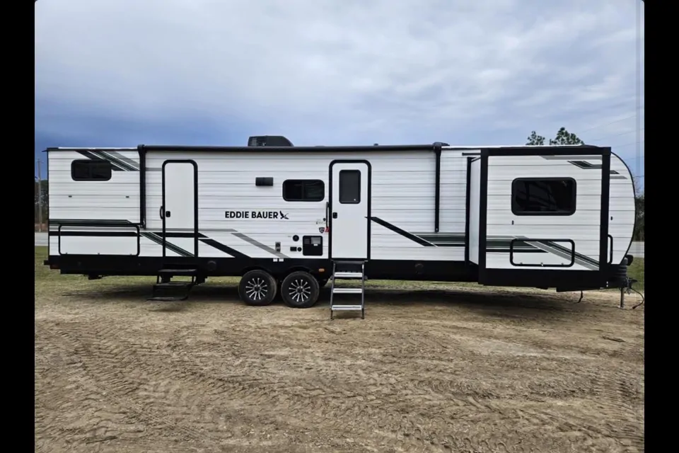 Enjoy your next getaway in our spacious Heartland Eddie Bauer 34BHS, a comfortable and well-equipped travel trailer perfect for families and groups. With a smart bunkhouse layout and plenty of room to relax, this trailer is ideal for camping, festivals, and extended stays.