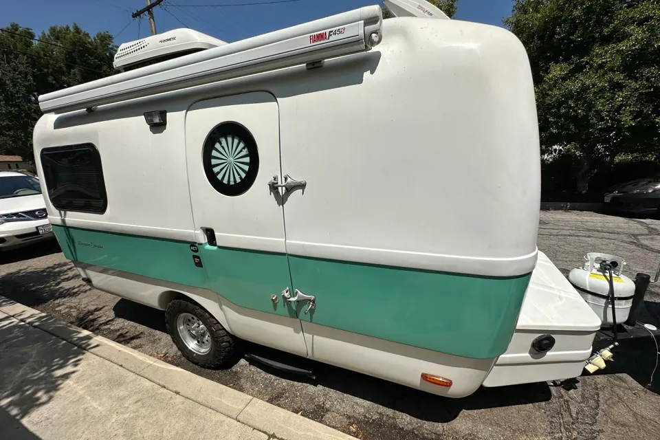 For Production uses only. 17’ Happier Camper Travel trailer. Modular design, capable of setting up two dining areas and two sleeping areas. Fully air conditioned, restroom, and refrigerator. Light weight design, easy to tow.