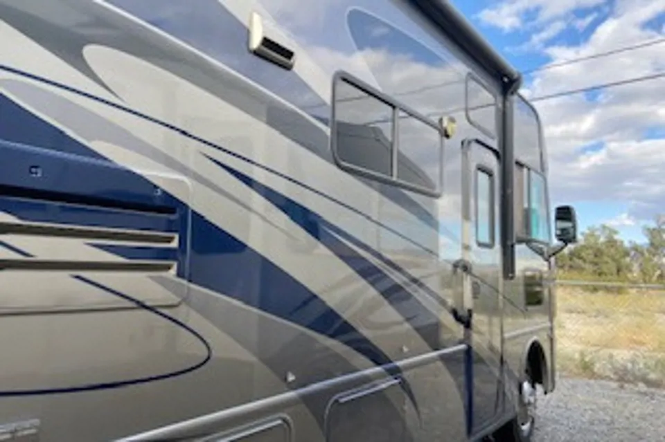 Very clean and and spacious class A motor home. Whether you want hang out inside and play board games or out side with smores' this is a great family friendly RV. My family loves it. I have 5 children and we all are very comfortable inside. Surround sound through out motor home. pillow top queen mattress in back. Auto leveling jacks quipped.
