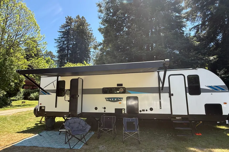 As you get away for the weekend to enjoy nature's beauty, you'll be so glad that you chose to bring this Salem Platinum travel trailer along! The full kitchen with its three-burner cooktop and walk-in pantry will allow you to prep meals whenever it is convenient for you, and the large slide that contains the extremely functional Versa Lounge will deliver extra space to the interior so that you don't feel cramped. Your kids will be able to invite a friend or two because of the double-size bunks that are in the back, and since these bunks are right next to the full bathroom with a walk-in shower, your kids won't have to search far in the middle of the night.