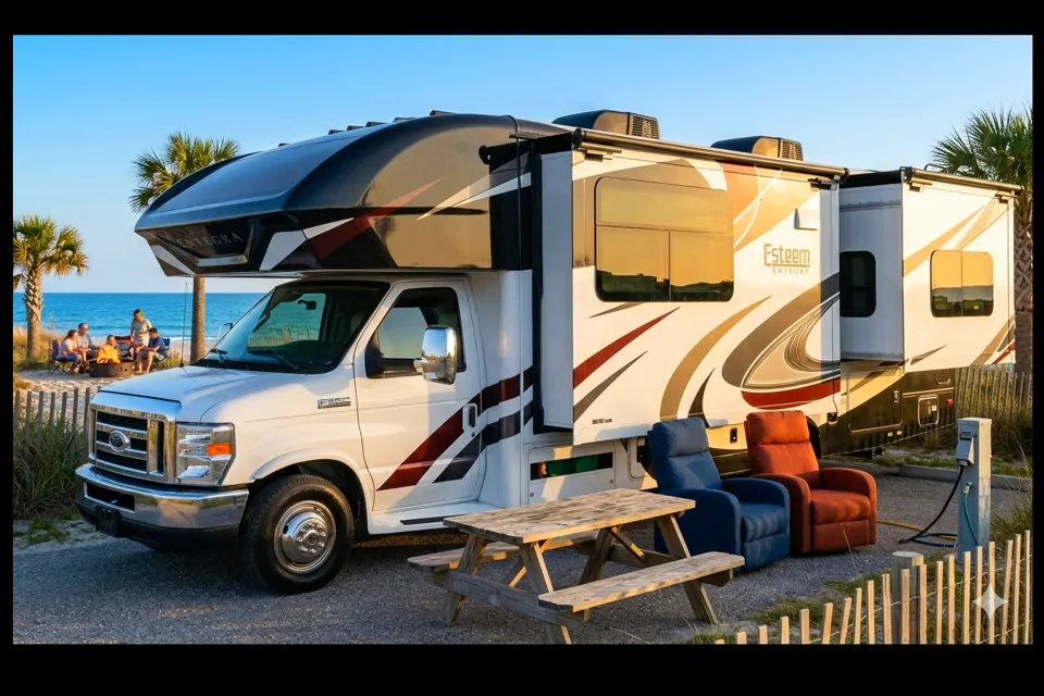 Explore the open road with comfort, style, and space in this Jayco Entegra Esteem 27U. Designed with families in mind, this Class A motorhome delivers a well-appointed interior, smart layout, and all the essentials needed for unforgettable vacations, weekend getaways, and road trip adventures.