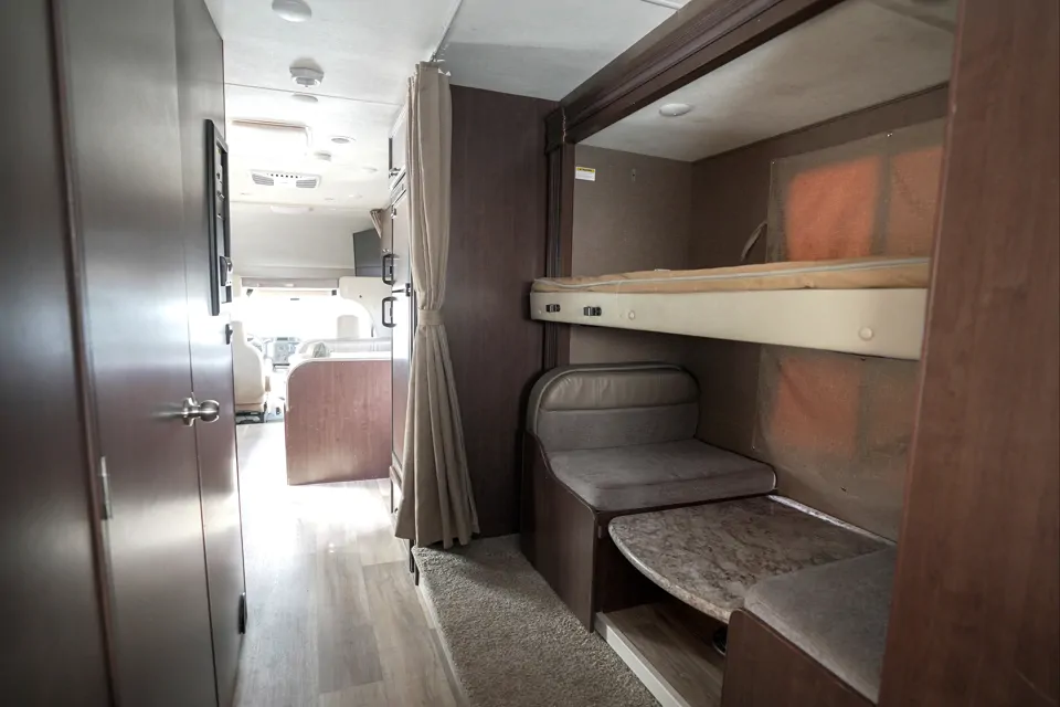 The bunkhouse design gives everyone their own space—something that makes a huge difference on long road trips. Parents love the private master bedroom, while kids and guests enjoy the dedicated bunks and cab-over sleeping areas. It’s like traveling with your own rolling home, complete with all the comforts and flexibility you need.
