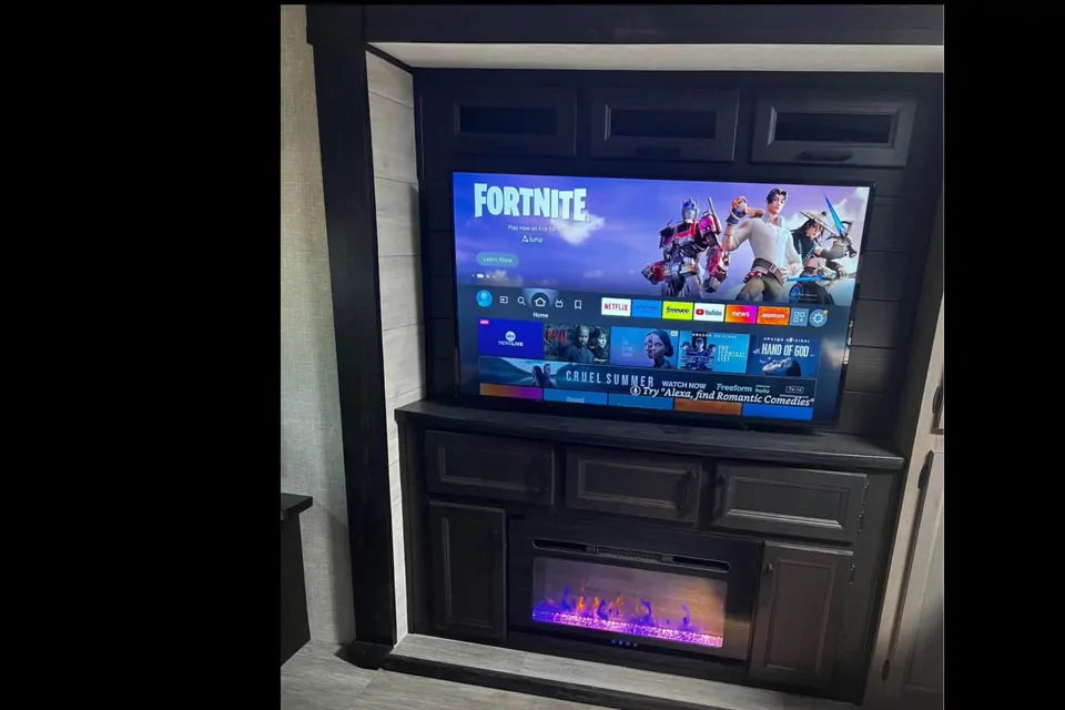 Don’t you just love camping! I do! You will be able to camp in style in our comfortable well equipped travel trailer. Cozy up to the fireplace while enjoying the entertainment center in our comfortable theater seats. A fire pit is included for your use. Enjoy 2 big screen TV able to connect to your hotspot.