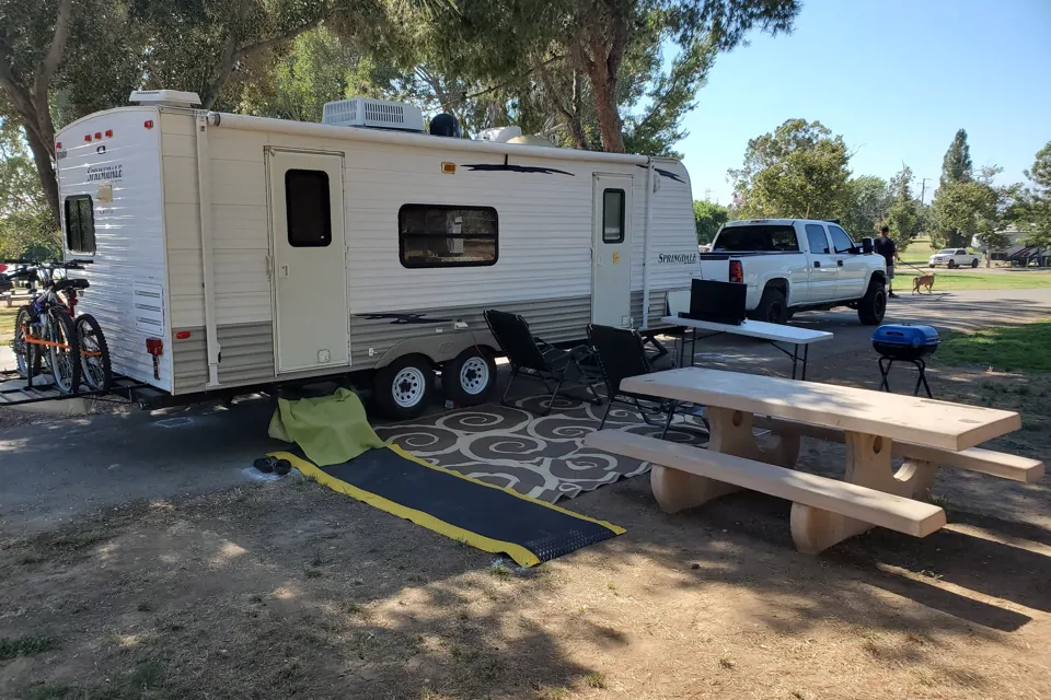 This light travel trailer is perfect for going on a trip either short or long term as a couple or a family with children and live full of adventures! Its couch, which can seat 3 people, and its booth dining room table that can sit up to 4 people, can easily be converted into beds that can accommodate your four young children or 3 teenagers or 2 adults. The forward master bedroom has a queen-size, walk-around bed that has a topper on it and the bed has end tables. With a Smart TV that's in the bedroom and a TV with the Amazon Firestick in the livingroom. You have 100’s of channels to choose from or you can cast from your mobile device. It's a BYOI (Bring Your Own Internet). This RV comes with a radio and a DVD player as well. It also comes with 2 doors, so that you can have privacy in the bedroom. The 20-foot awning provides plenty of shade to do unlimited activities from sleeping on your favorite chair to playing games or barbeque under. Boondocking? It's also great for boondocking too. A 4450W/3550W gas generator is offered to supply you with enough electricity to run whatever you need to run. This RV is light enough to pull with a pickup truck or large SUV with ease and heavy enough to have loads of fun. Free delivery up to 60 miles with a straight month of rental.