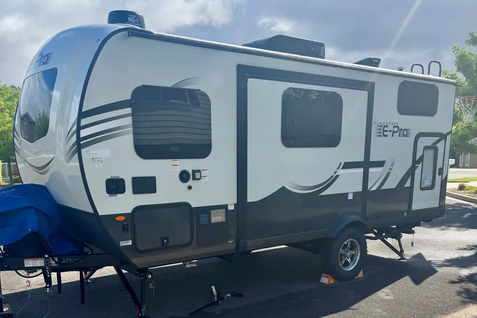 Take your next adventure to the next level with our new 2024 Flagstaff E-Pro 20BHS—a lightweight, 3500lb bunkhouse-style travel trailer built for families, couples, and weekend warriors who love the outdoors. Whether you’re chasing mountain views, stargazing in the desert, or relaxing by the lake, this rugged-yet-modern rig is your perfect basecamp.