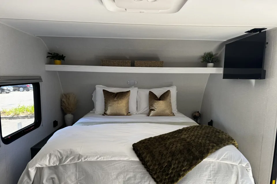 Step into luxury glamping with The Ultimate Cupples Glamper, our beautifully designed Heartland Eddie Bauer Edition 17 RBC. Perfect for couples seeking a romantic getaway, this fully stocked camper blends upscale comfort, clever storage, and stress-free adventure for an unforgettable experience.