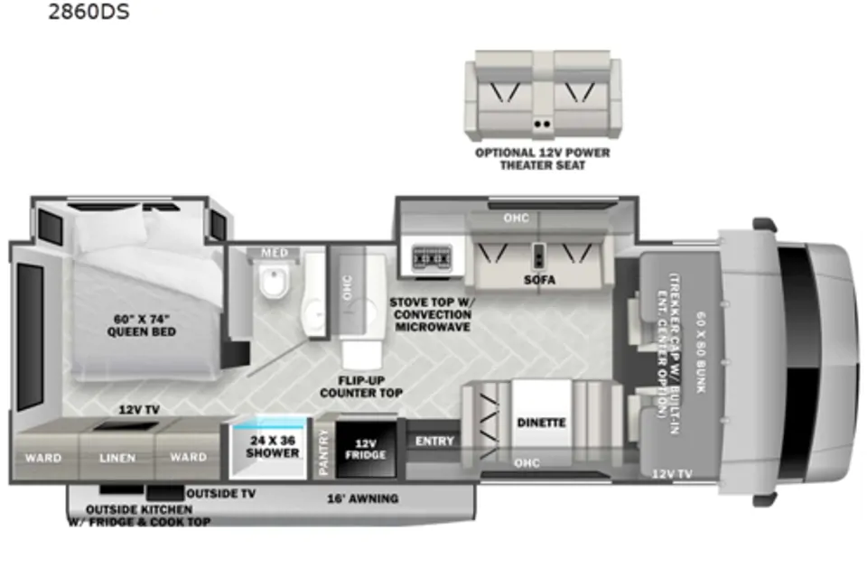 Pristine condition and ready for adventure. 2022 SunSeeker by Forrest River. Queen-sized bed, sink, induction stove with microwave, full bathroom with tub for the little ones and bunk beds with an adjacent TV!This rig is equipped with soft close drawers, brand new cabinets, full fridge, outdoor lighting and bluetooth speakers for movie night.