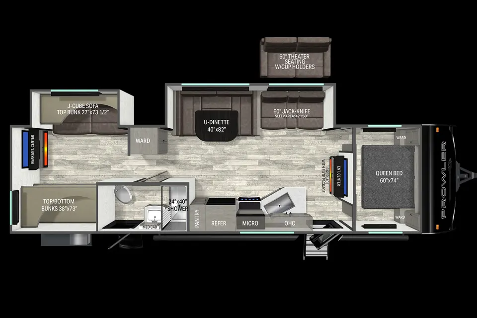 Whether you're headed to the mountains, lake, desert, or a full hookup RV resort, the Prowler 3202DSB delivers comfort and practicality. Perfect for families, group trips, or extended stays.