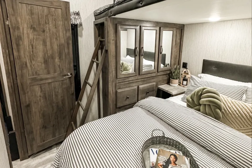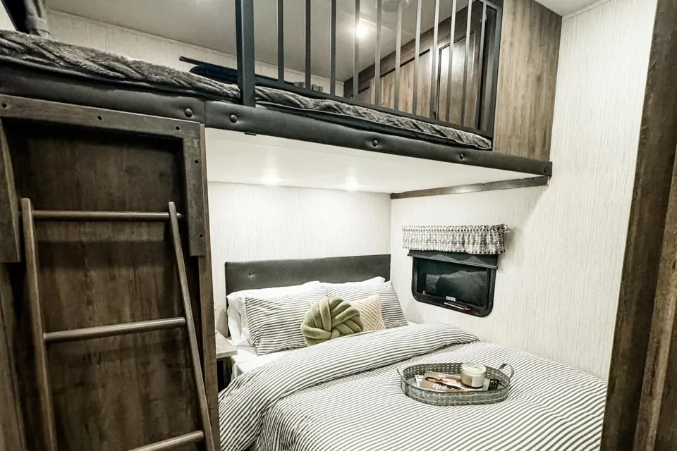 Are you searching for the perfect trailer for your large family or a group of friends? Look no further than the Sierra 3440BH. With two separate bedrooms featuring queen beds, a large loft area ideal for teenagers and kids, a sofa that folds out into a bed, and a dinette that can be converted into a bed, this trailer has everything you need for a comfortable camping trip. Plus, it comes with three Smart TVs, a functional fireplace, and a large residential refrigerator, all recently upgraded. Your family will feel right at home in this trailer. Don't miss out on this opportunity to make unforgettable memories with your loved ones.