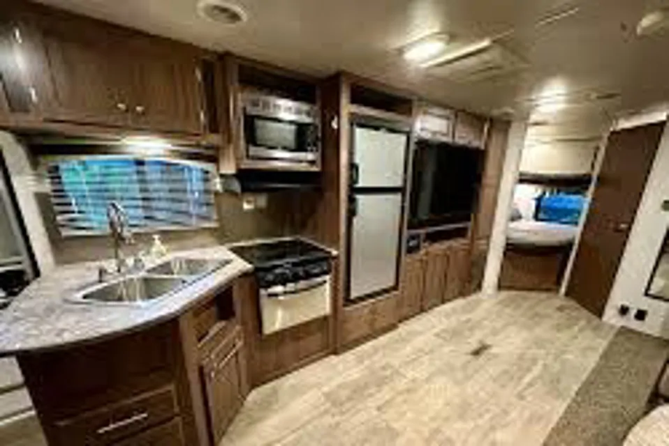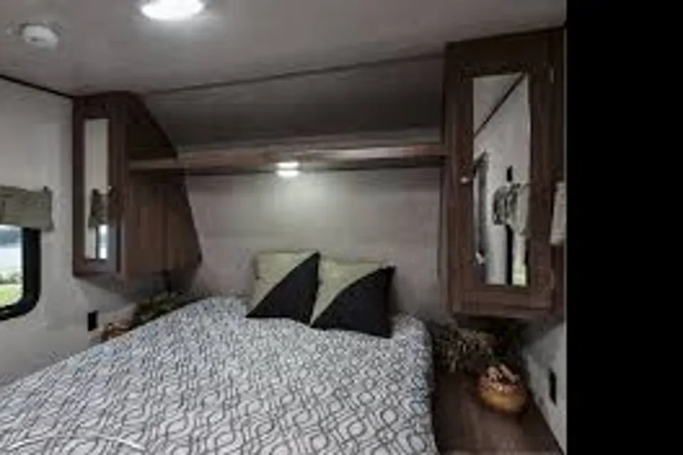 Our camper was designed with families in mind, there’s room for everyone to relax, sleep, and play! With double bunks, a private queen bedroom, and convertible seating, it comfortably sleeps up to 8 people. The open floorplan, large slide-out, and plenty of windows make the space bright and airy.