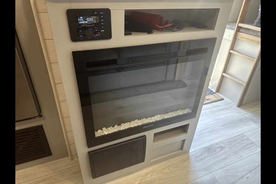 The RV count with out side refrigerator and grill also in and out audio speakers
