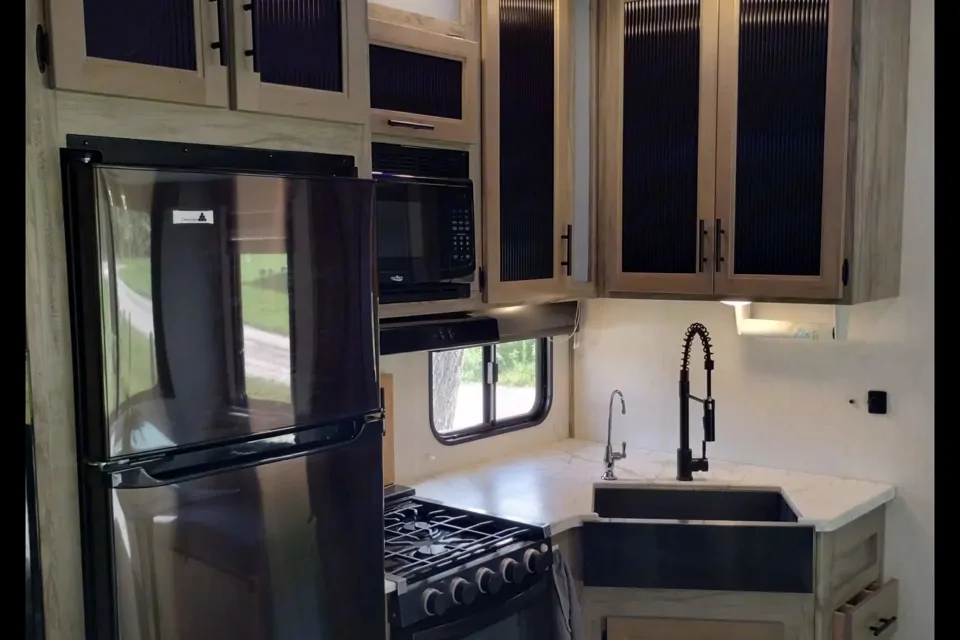 Moving outside you can relax under the awning or cook a meal on the outdoor kitchen. A mini-fridge close by for all your favorite beverages.This unit boasts plenty of storage inside and out - Very functional and minor details have been addressed to make setup and breakdown easy for our guests. A Whole rig water filter is installed onboard to avoid the extra connections, as well as a Built in Power monitor to keep the rigs power safe for all your electronic devices.Delivery option includes setup of the unit on your campsite and a walkthrough of all systems and functions, and complete breakdown at the end of your trip.