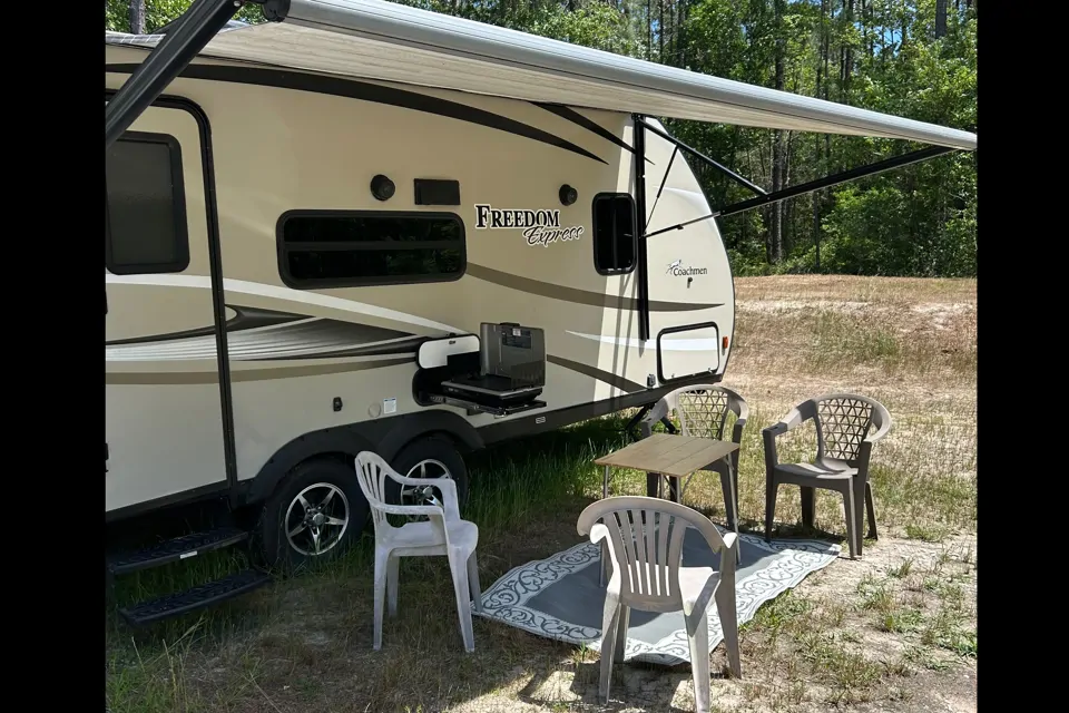 Perfect RV for a couple! Can be used for a small or long getaway! Can be pulled with a midsize pickup truck or full size SUV. The Rv comes with a comfortable queen size bed and a futon pull out bed. On the outside the unit, there is an awning and a small pull out grill. It has everything you need including linens, towels, toilet paper, pots and pans. We also provide propane, water hose, sewer hose, 2 camping chairs, area mat, 2 different size tables, coffee maker, 30 amp converter to 50 amp, broom with dustpan, and trash bags to get you going. If you are towing the Rv we will provide the tow hitch and sway bars as well. If you are looking for local delivery we will set everything up for you on site. Feel free to message me with any questions or concerns.