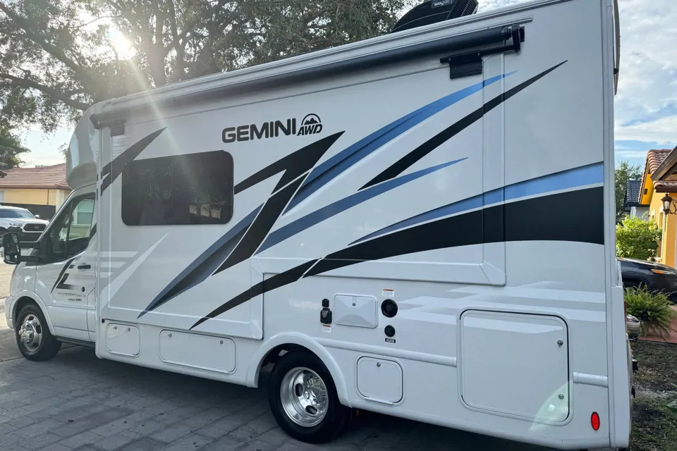 Brand New Unit! Home Away From Home. Very spacious and has controllable LED lights, LED Light Rug, and Mini Projector with Screen. Easy to handle and maneuver with all 2024 features. Pillow Top on bed and includes linens, cookware, and dinnerware- all set for your comfort !