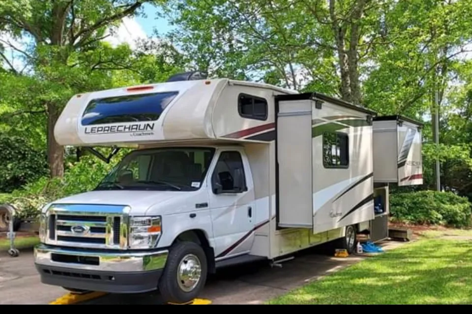 Meet Leprechaun, a premium Class C motorhome that comfortably sleeps up to eight guests and is designed for a smooth, easy, and enjoyable travel experience. It features upgraded suspension with rear airbag suspension and an anti sway system for confident handling on the road. The open and spacious interior includes a well designed kitchen stocked with essential cookware and dining items for your convenience. This RV is equipped with modern 12 volt features, including a 12 volt refrigerator and a solar panel system for added energy independence. A 12 volt front cab TV allows passengers to enjoy entertainment during longer drives. An electric 18 foot awning provides a comfortable outdoor space at camp, and delivery service is available to bring the RV directly to your doorstep. Please review the rental guidelines below before departure to ensure a smooth and enjoyable trip.