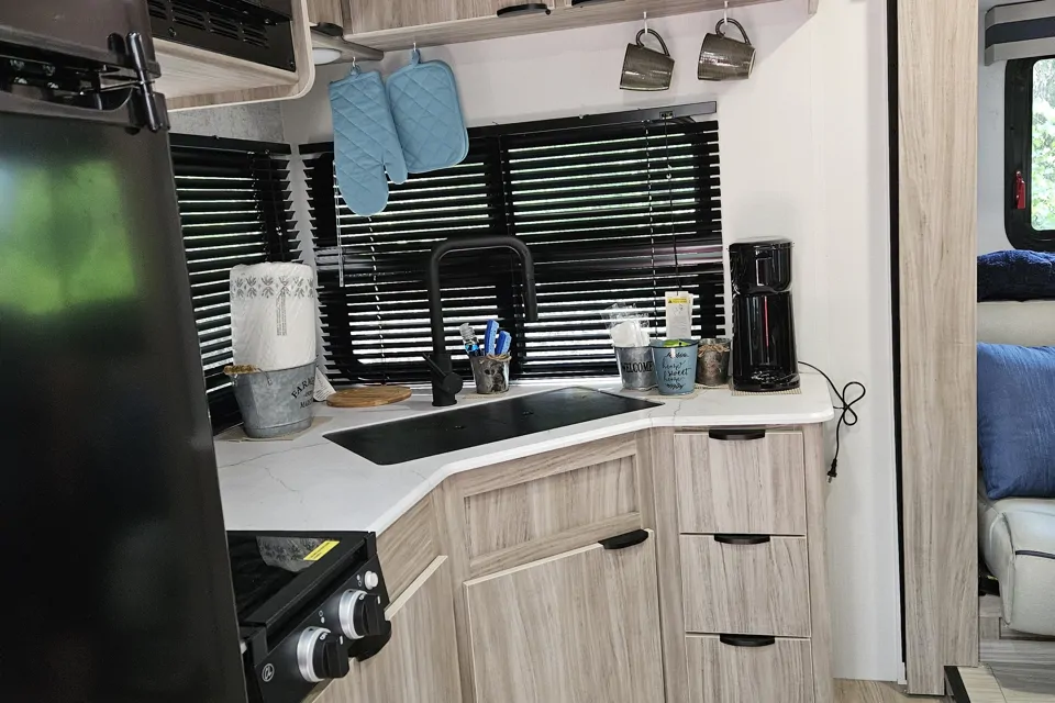 Need a camping trip to get away? We've got you covered! 2024 27 ft immaculate travel trailer! Enjoy camping with all the amenitites from home! We make it easy for you, you reserve the campsite and we deliver and set it up for you. If it's raining, we have you covered. Rental includes card games and a small "little library" where you can take a book or leave a book. It's hot out, the AC is ice cold. RV comes with linens, pillows, and cookware.