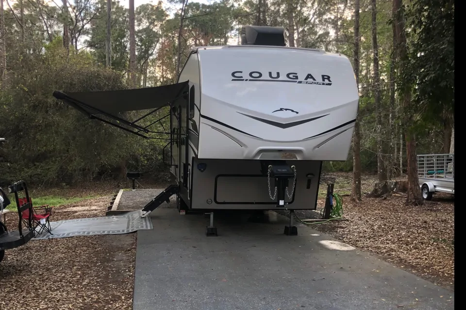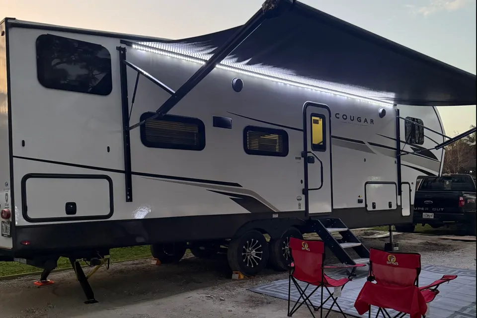 Welcome to your home away from home, as you walk up you can see the large awning with led lights to make for great memories at the campground during those peaceful nights while hearing your favorite tunes via bluetooth radio. After taking the steps up inside the camper you can see a large kitchen fully stocked with the essentials you need to make delicious meals. The dinnete offers not only memories for eating those delicious meals, but also enough space to make for fun game nights with your family or friends. The dinette and couch offer a large amount of room to host all your family and friends. Next to the kitchen you find a tv that can project the sound inside and outside the camper so you do not miss your favorite game while enjoying the outdoors. Walking up the stairs, you find the spacious bathroom, which includes a tall shower with a shower head as the tankless water heater relaxes you after a long day. Once exiting the bathroom you find the master bedroom, which has a comfortable queen size bed, each nightstand has a night light and charging outlets. The bedroom offers a large closest and has two drawers to store all your belongings. As well as there is even more storage underneath the matress. After a long eventful night, pass through the kitchen, slide the bunkhouse door open you find three bunks with charging outlets and nightlights beside each bed. The bottom bunk can double as a bunk or remove the mattress and create storage for all your luggage. Should you find this not enough storage for the bunkhouse, there is a large two shelf cabinet to store your belongings. Hope I can share my home away from home to you and your family, and you can make countless memories!