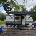 Please consider my trailer for your camping/vacation in the greater Orlando area. This comfortable, cozy trailer sleeps 4, with new queen bed and bunks. Offering the comforts of home. Included are linens, towels, utensils, pots and pans, dishes, first aid kit, fire extinguisher and fire blanket, TV, 3 Lg chairs, 2 M chairs, 1 sm chair. Also have some extras for a small fee. Please feel free to ask any questions about the rental or the Orlando area. I'm familiar with the area and things to do. I worked in hospitality for 16 years and been doing rideshare for the past 10 years. Thank You for considering my/your lil home away from home.