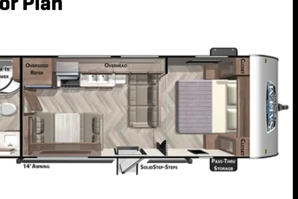 Hello this is our Salem cruise lite 241QXL bye Forest River medium size camper very comfortable upgraded cushions throughout makes for a easy sleep. There's a queen bedroom in the front of the camper with its own smart TV closets and nightstands on both sides of the bed with USB & wall plugs. Hanger's to hang clothes plenty of storage underneath the bed that follows through to the outside storage lockers. There's a curtain for privacy The middle you'll find a very comfy jack knife couch that will sleep two. Also a comfy dinner table that turns into a bed for two. A fully stocked kitchen with everything you would need to make meals including a crockpot, toaster, microwave, 3 burner stove with a griddle and a oven. A 10.4 cubic ft refrigerator with freezer that cools in tow All cooking and baking utensils are in place.