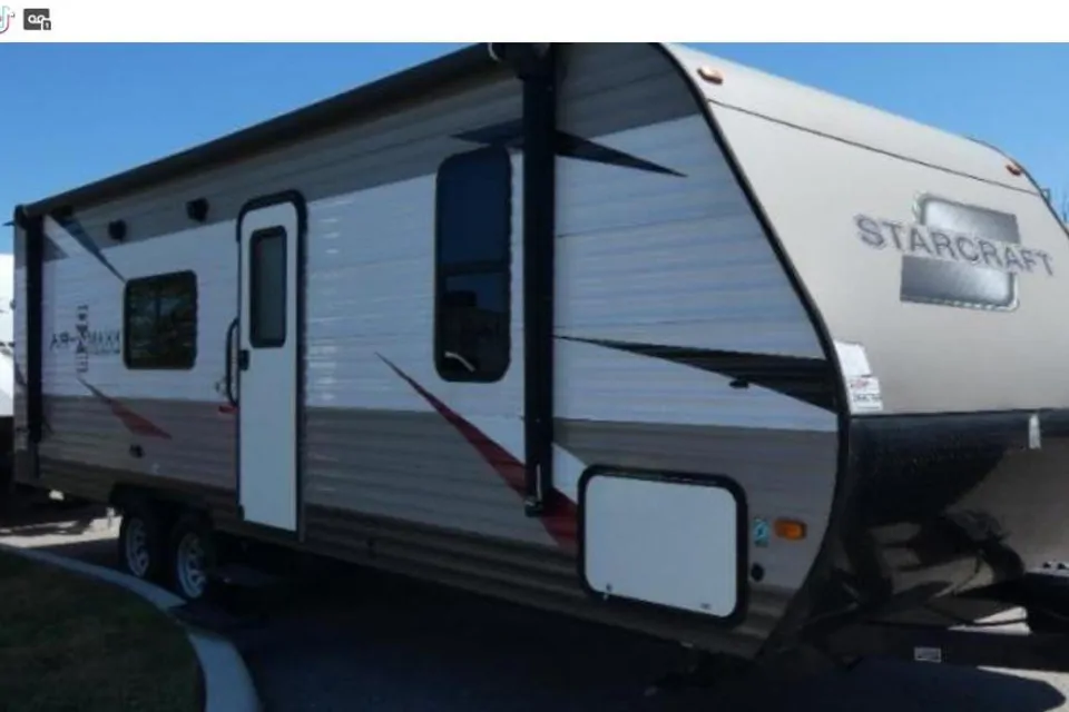 Travel trailer is a StarCraft. It can sleep up to 8. I comes with a Full size mattress in the main and 2 twin bunk beds. Table and couch also folds down for sleeping. Comes equipt with AC and Heat. Has heater and water pump, inside and outdoor shower. Sink, stove, microwave and refrigerator and freezer. 2 -10 gallon propane tanks. Trailer weights 4500 lbs. Has extra storage and also comes with television (32"). Trailer also has a propane grill for use outside. Comes with all water hoses and sewage drain lines. Trailer is 2017 and does not leak. Outside awning with lights. Cabinets for storage and also in the bedroom.