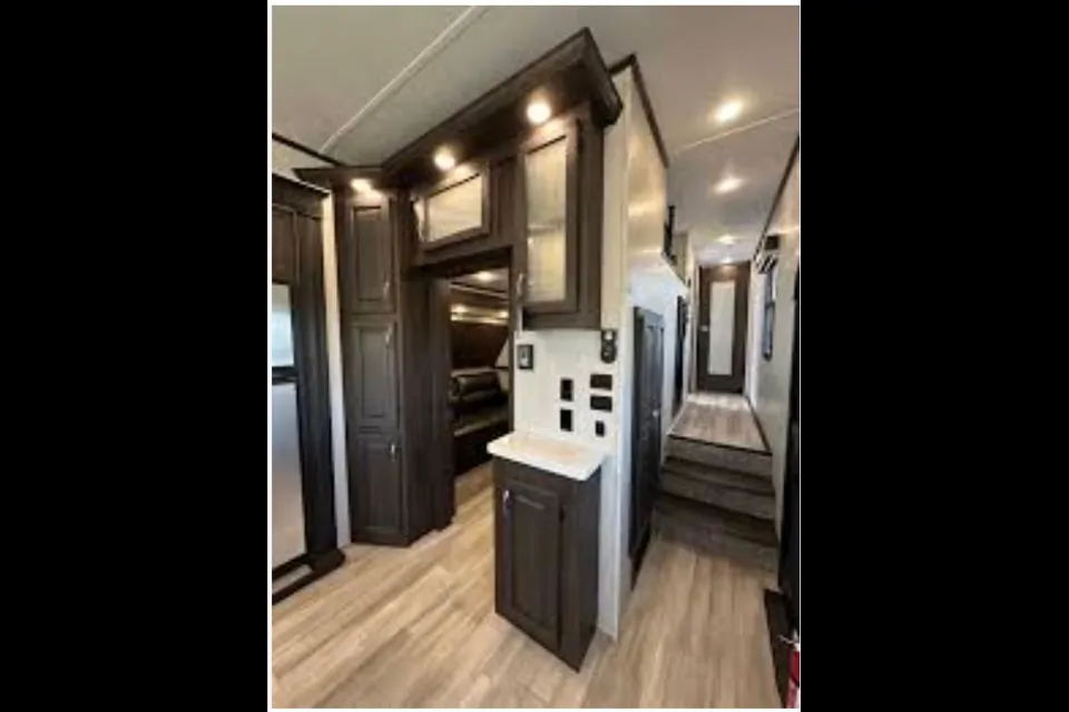Lots of seating areasThis amazing 5th wheel features a a master room with a king bed, washer and dryer! There is a loft that can sleep 2, the bunkroom has a twin bunk with a full size pull out couch, and the family room has a king size pull out couch. Kitchen has an island and as well as a table and chairs! Another nice "glamping" option.
