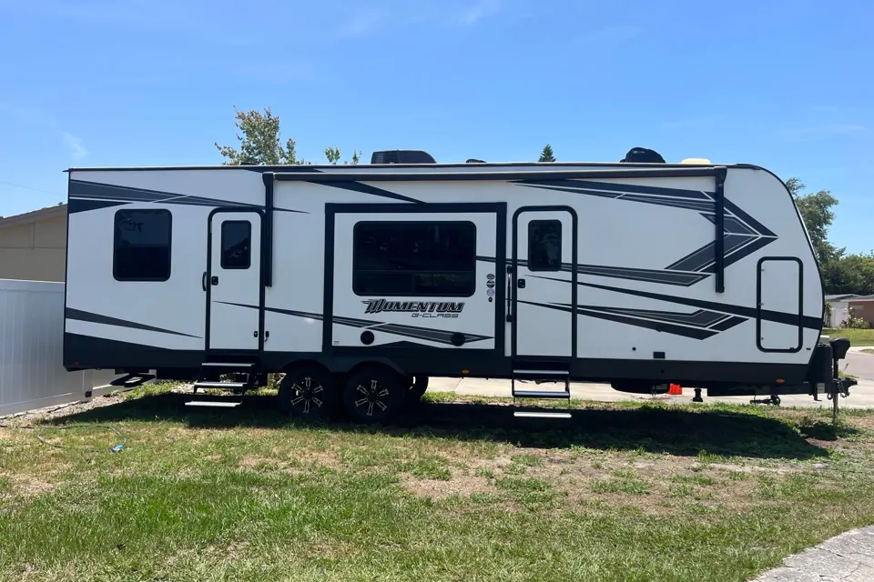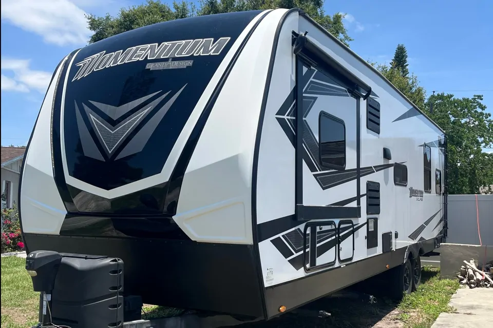 Looking for the perfect mix of comfort, space, and off-road capability? Rent this 2020 Grand Design Momentum G-Class 29G Toy Hauler—built for outdoor fun and ideal for families, couples, or small groups looking to bring their toys along for the ride!