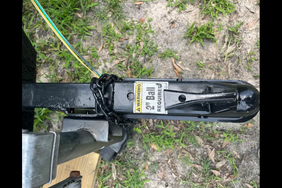 Trailer approximately 14 ft long with spare tire stored in the back x 5 ft wide x 7.5 ft tall with the Tent Unopened