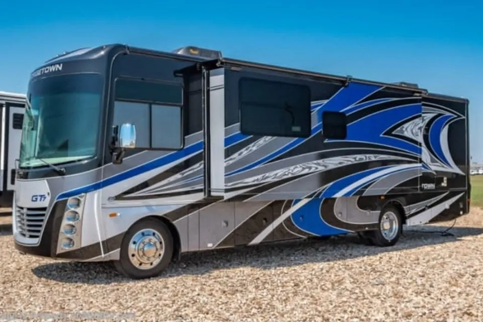 Hello!!! You will not find an RV that is easier to drive than this one. Rent our beautiful motorhome today and experience the freedom of cruising around in a fully contained home on wheels. This 32-foot RV has all the comforts of home including beds that sleeps 5,(2)A/C for those warm summer nights, two full shower and toilet, burner stovetop, microwave, fridge/freezer, swivel seats with a fold out dining table, you name it! Everything you need contained pure luxury and freedom. Hit the road in this brand-new GEORGETOWN 2022. We are also able to deliver & pick up if needed, just send us a message and we'll get back to you right away!
