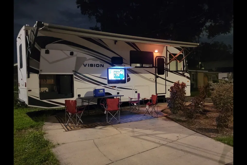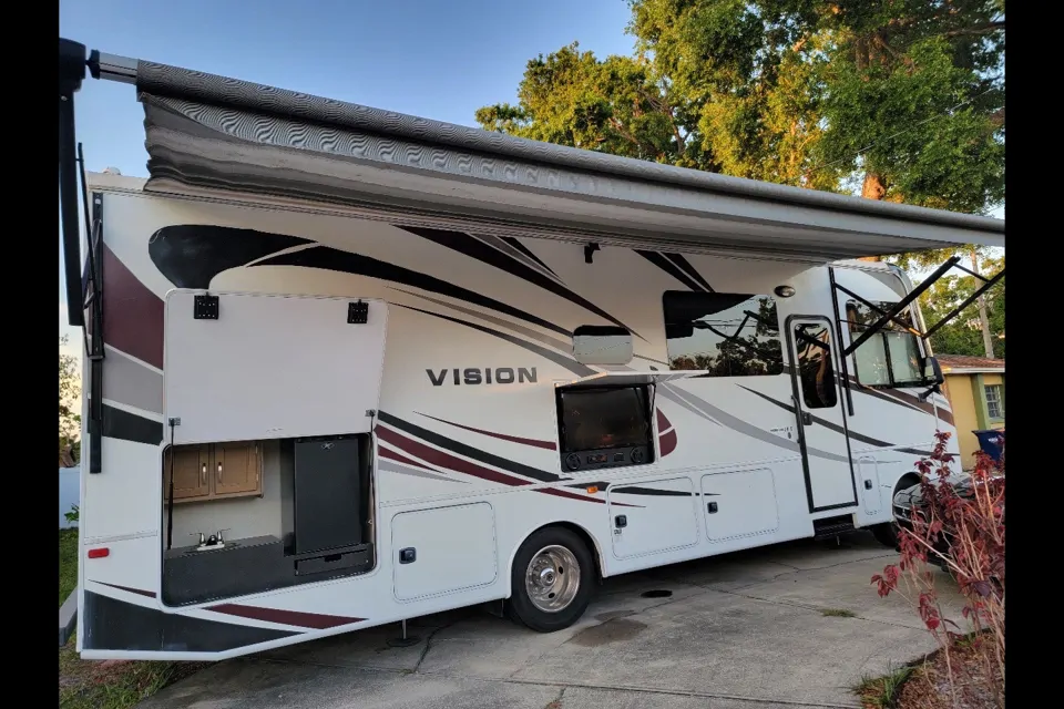 This is a beautiful Class A Entegra Vision Motor Coach! Sleeps 8 and offers lots of room! This floor plan makes camping with a large family a grand experience! Our favorite part is the spacious common area while driving! The bed above the cab is a favorite for kids n teens! Dinette folds to a bed! Equipped with 2 TVs and plenty of board games to keep you entertained! Fully stocked kitchen and linens makes for an easy start to your getaway! Enjoy the outdoors with an LED lit awning! Drive this gentle bus to your great escape with ease Or we will deliver and set it up for you at your chosen location. Have any special requests, we will be glad to accommodate. We have kayaks and fishing poles available as add-ons. For Music Festivals we up the deposits 3x and minimum age for renter is 30. Allow us to be your Host and we will make sure to give you a 5-Star Experience.