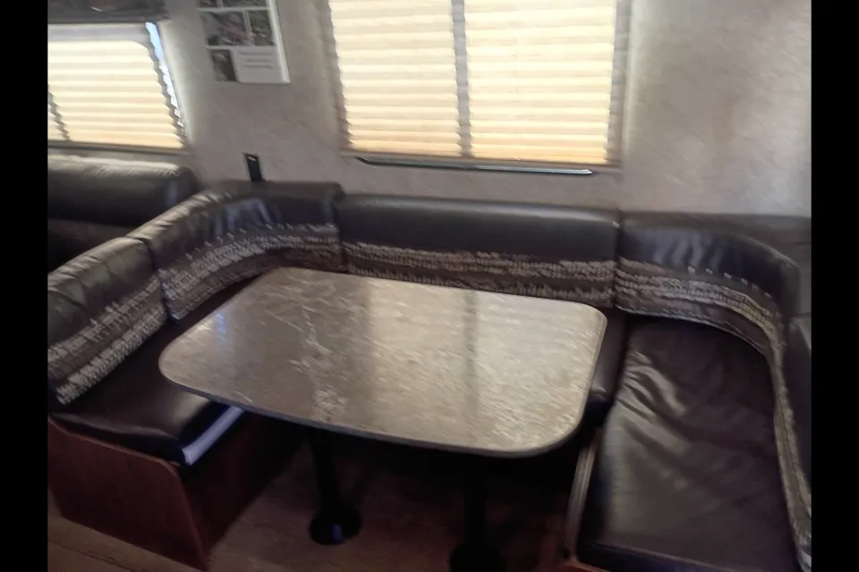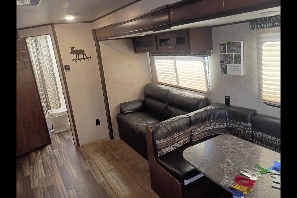 This 28-foot travel trailer comfortably sleeps 6–8 guests and features a large slide-out, giving you plenty of room to relax after a day of exploring. Whether you’re roasting marshmallows, cooking outside, or winding down with a movie, this trailer is set up to make camping easy and enjoyable.