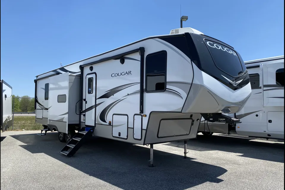 This Keystone Cougar 364BHL is the ultimate family camping camper. It has two separate bedrooms with a kitchen and living area in between. Kids or guests have their own bathroom and entrance. Plenty of storage and closet space, and three TVs. Cook outdoors and enjoy your time spent under two awnings.
