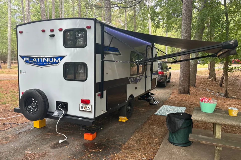 Very clean and organized trailer. Great for mom and dad with small kids. Bring your bed sheets, towels, blankets and pillows. We supply camping chairs to put around the fire. A/C nice and cold. We supply a tow bar.