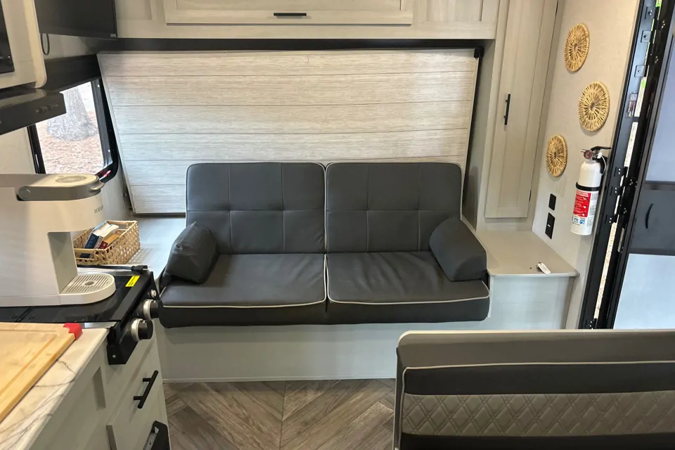 Very clean and organized trailer. Great for mom and dad with small kids. Bring your bed sheets, towels, blankets and pillows. We supply camping chairs to put around the fire. A/C nice and cold. We supply a tow bar.