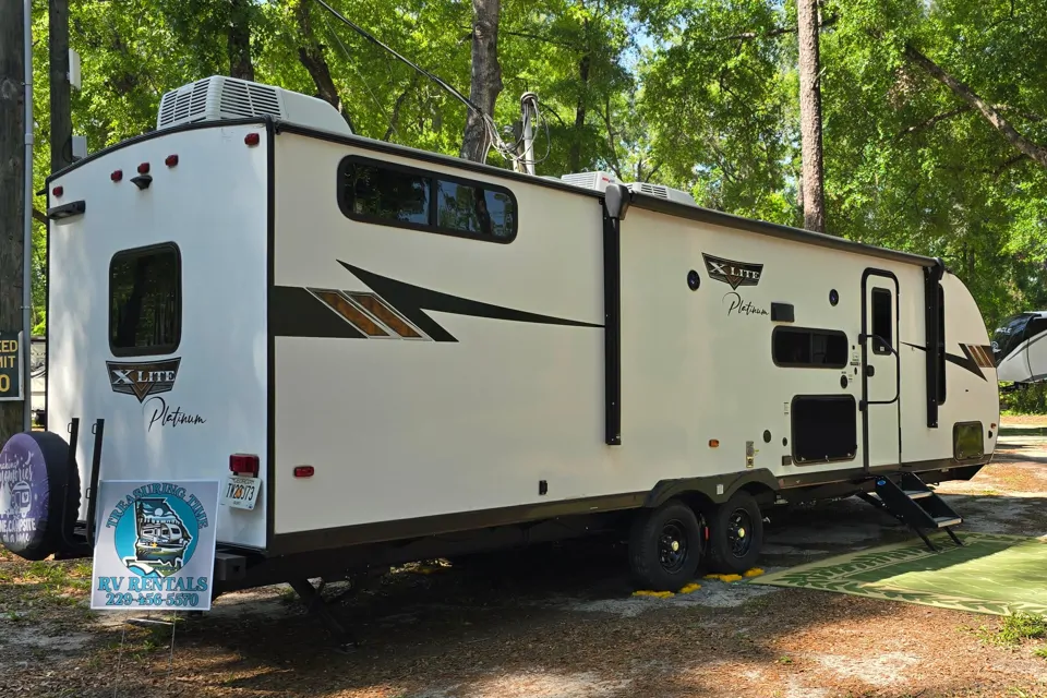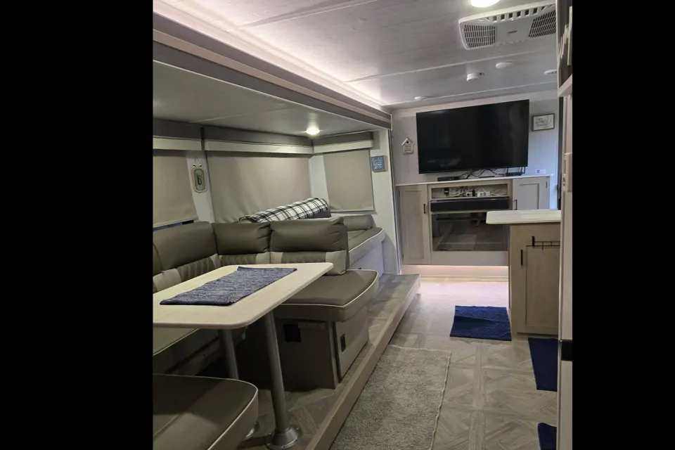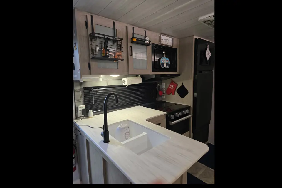 RIVER is a very roomy travel trailer that can easily sleep 10 people. It has an outdoor kitchen. It comes equipped with everything you will need except for your clothing, food (paper plates and plasticware), and personal hygiene Items. There is a Keurig (pods only). There is a NO SMOKING POLICY. NO smoking of any kind.