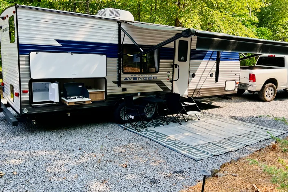 1. Comfortable Accommodation: The Primetime Avenger 26BK offers ample sleeping space for up to six people. Enjoy a restful night's sleep in the queen-size bed while the kids have their own cozy bunk beds.2. Fully Equipped Kitchen: Prepare delicious meals on the go in the well-appointed kitchen, complete with a refrigerator, stove, oven, microwave, and sink. It's like having a mini home on wheels!3. Entertainment Options: Kick back and relax in the spacious living area, featuring a comfortable sofa and a TV for entertainment. Whether you want to watch your favorite shows or have a movie night with your loved ones, we got you covered.4. Convenient Bathroom Facilities: No need to worry about shared campground facilities. This travel trailer comes with a private bathroom, including a shower, toilet, and sink, ensuring convenience and comfort wherever you go.5. Outdoor Awning: Take advantage of the beautiful outdoors with the Avenger 26BK's exterior awning. Create a shady spot to relax, dine, or simply enjoy the scenic views.6. Ample Storage: Don't compromise on space! This trailer is equipped with plenty of storage options, including overhead cabinets and external compartments, making it easy to keep your belongings organized.Delivery and Pickup Service: We offer convenient delivery and pickup options to select locations.