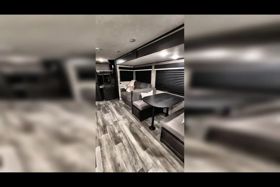 What makes this camper special is how effortlessly the space transforms. With the large slide-out extended, the living area opens up into a comfortable, welcoming space where both small and large groups can relax, gather, and enjoy time together — without ever feeling cramped.