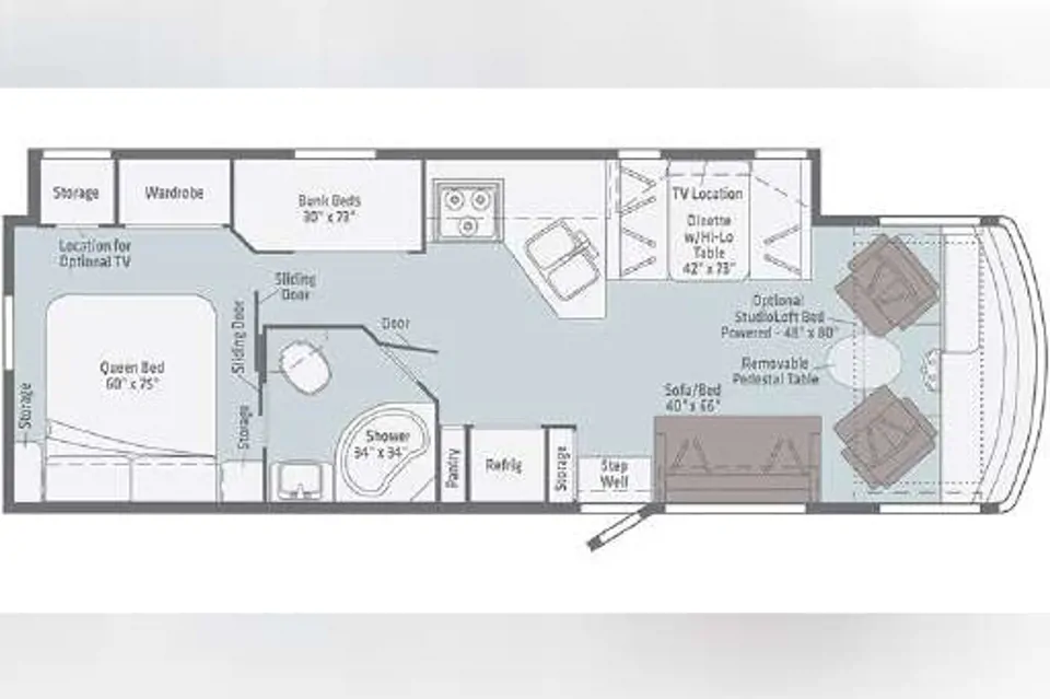 Harvey the RV is the best travel companion you can think of. He is equipped with so many amenities and has so many comfort improvements. He sleeps 7 .( 1 x Queen, 2 x Bunks (Top limit 150 lbs), 1 x Twin over Driver (limit 160 lbs), Convertable Dinette (2 kids / 1 adult), 1x Convertable Sofa) very comfortably and has so much storage! In excellent shape, low miles, new front tires, awning, over 300 Ah of Lithium Battery upgraded, Auto leveling jacks, rear camera, bike hitch (Optional) and Electric Barbecue (Optional), tons of basement storage, Kids kayaks for use available, bunk beds, queen bed in back, multiple tvs, outside tv and so much more. We do a very detailed introduction and tutorial on how to use it. Extra Insurance coverage policy is required during booking thru RVezy in an event of an incident.