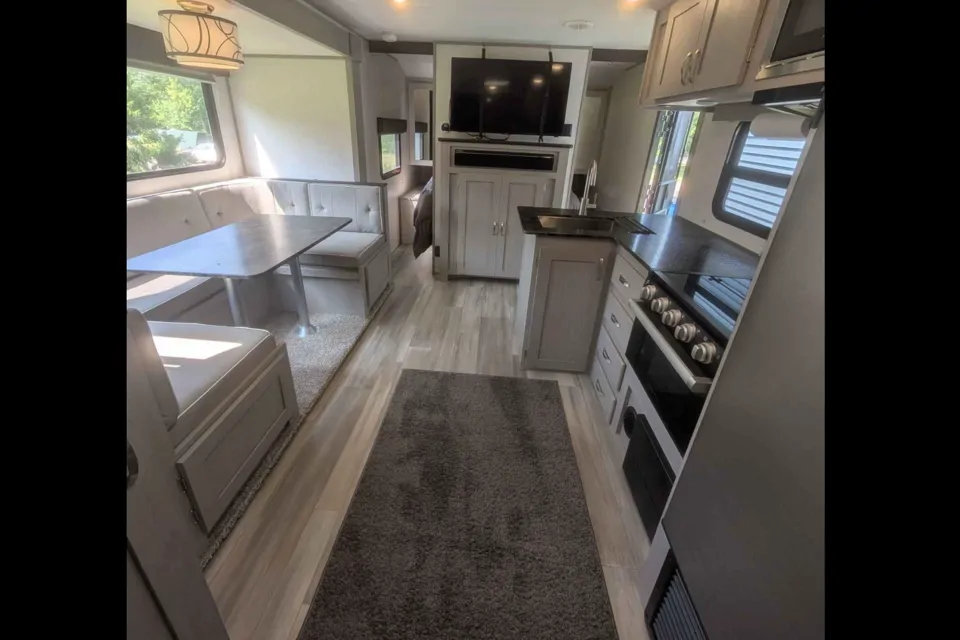Our camper is very spacious and comfortable. We send along camping chairs depending on your needs. The awning outside comes with led lights and the Bluetooth build in speaker is great for indoor or outdoor use through the side speakers. Also has an outdoor sink and cooking area. If you are looking for a fun yet comfortable camping experience you will love our camper. Comes fully stocked with all the essential cooking utensils including hotdog and s’more sticks for those camp fire nights.