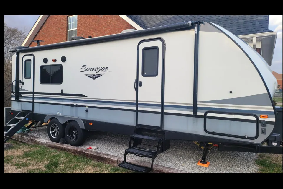 New queen/full bed linens, plenty of space to cook with our new cookware pots, pan's ext. New appliances like gas/electric refrigerator, microwave and gas stove (3 burners) Brand new queen size bed with over the head storage. Closets to hang all your belongings. Outside full length awning with lights and speaker for music in and outside. Two Propain gas tanks for heat and stove, electric fireplace. The camper is also kid and pet friendly.